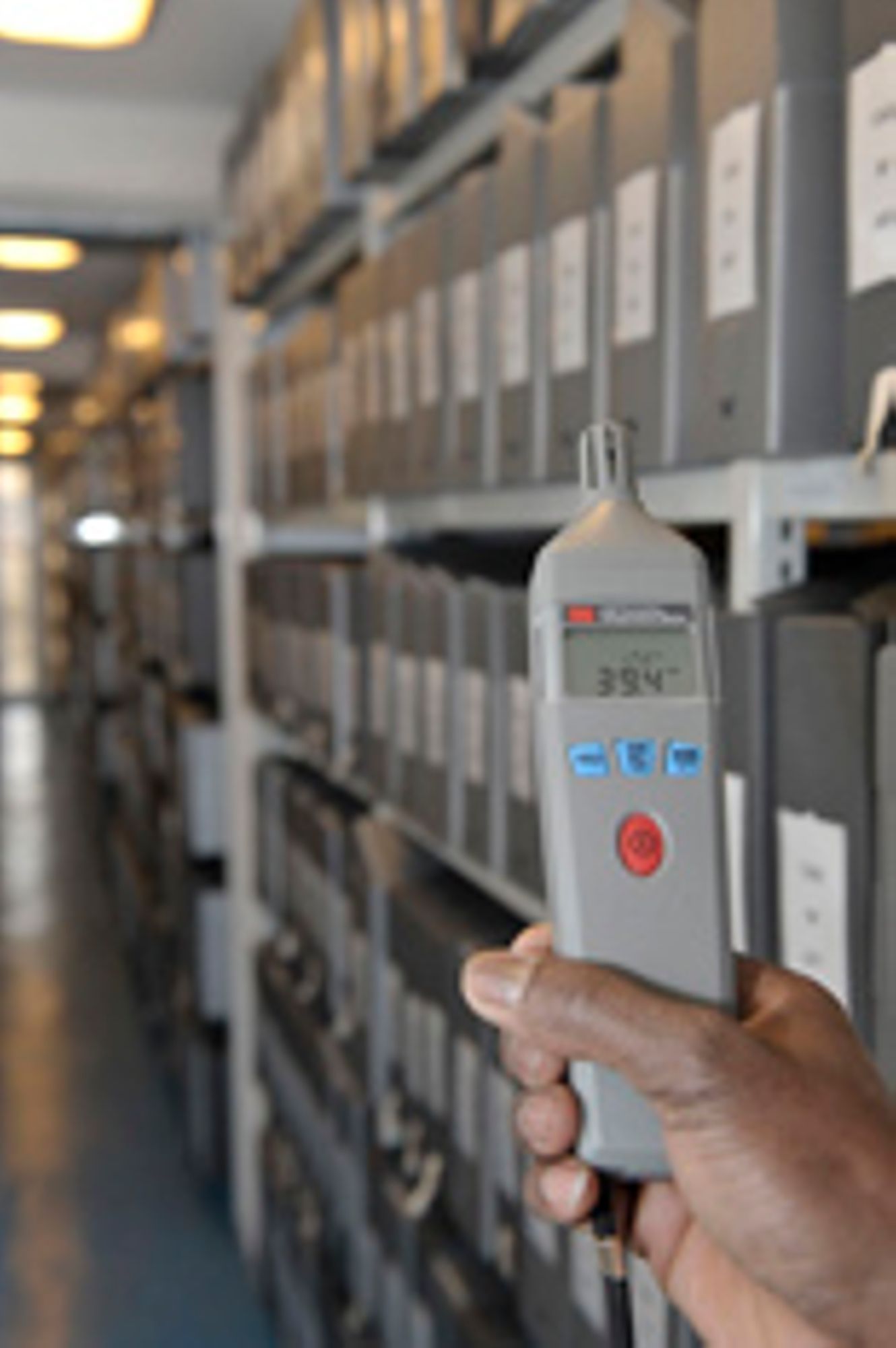 L’agent en charge de la conservation-restauration des archives veille aux conditions de conservation des documents. Il vérifie que les règles nationales et internationales sont bien respectées : température, hygrométrie, structure des magasins, types de conditionnements employés pour le papier, la photographie ou les plans calques…