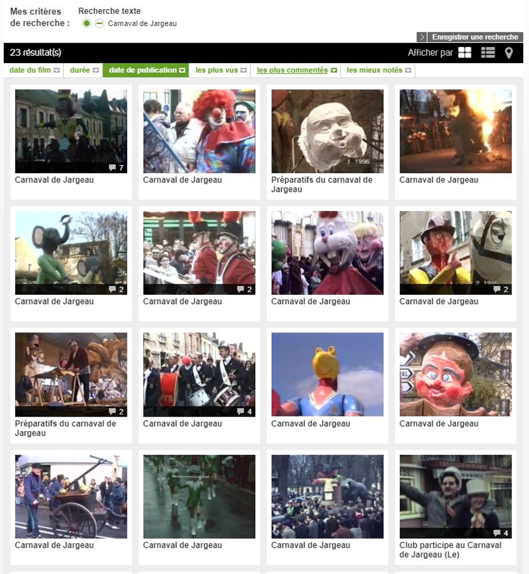 • Pour visionner des vidéos amateurs du carnaval de Jargeau, voir le site régional mémoire ciclic , les images d'archives en Centre-Val de Loire.