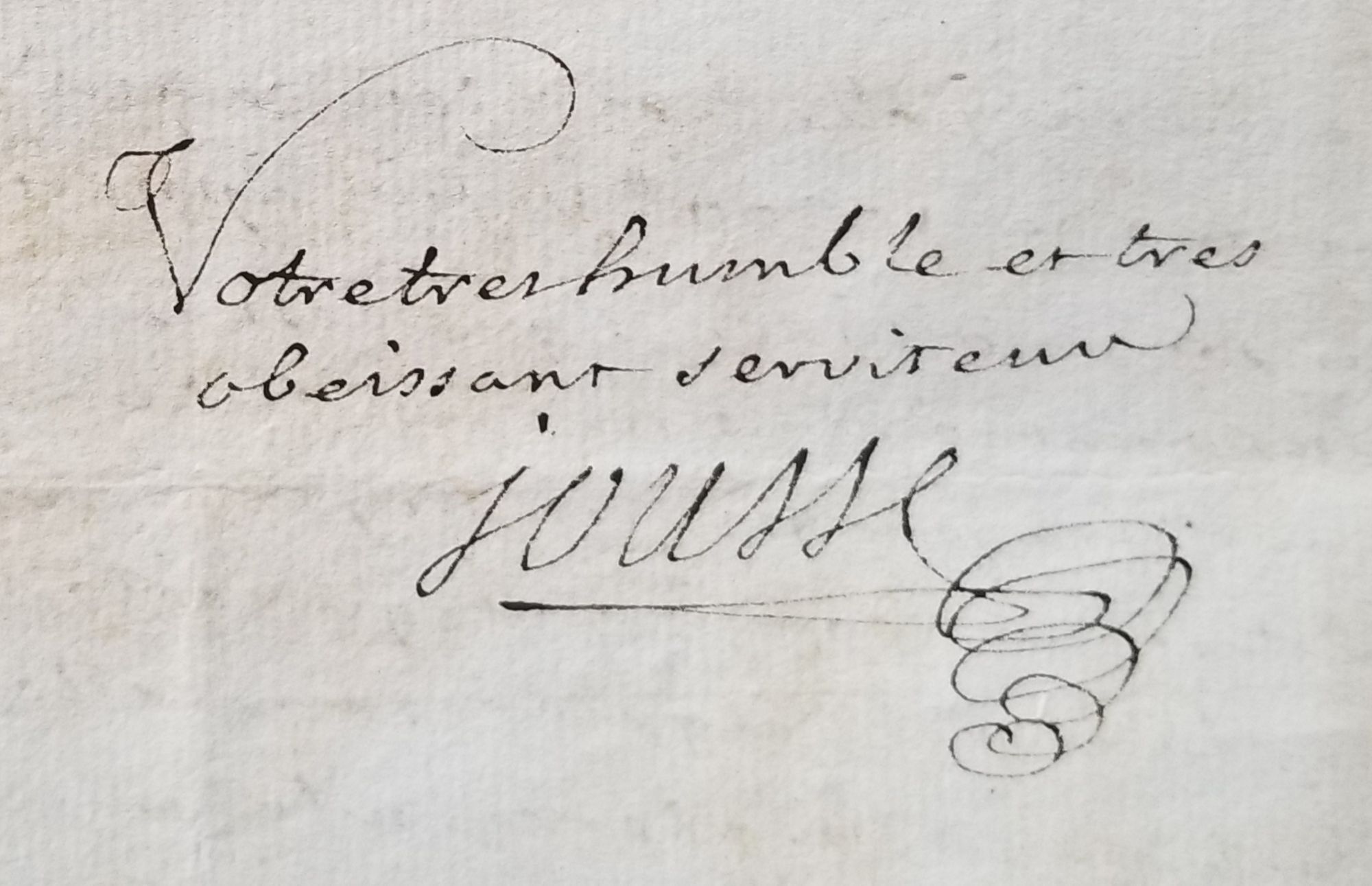 Signature de Daniel Jousse, « Votre très humble et très obéissant serviteur »