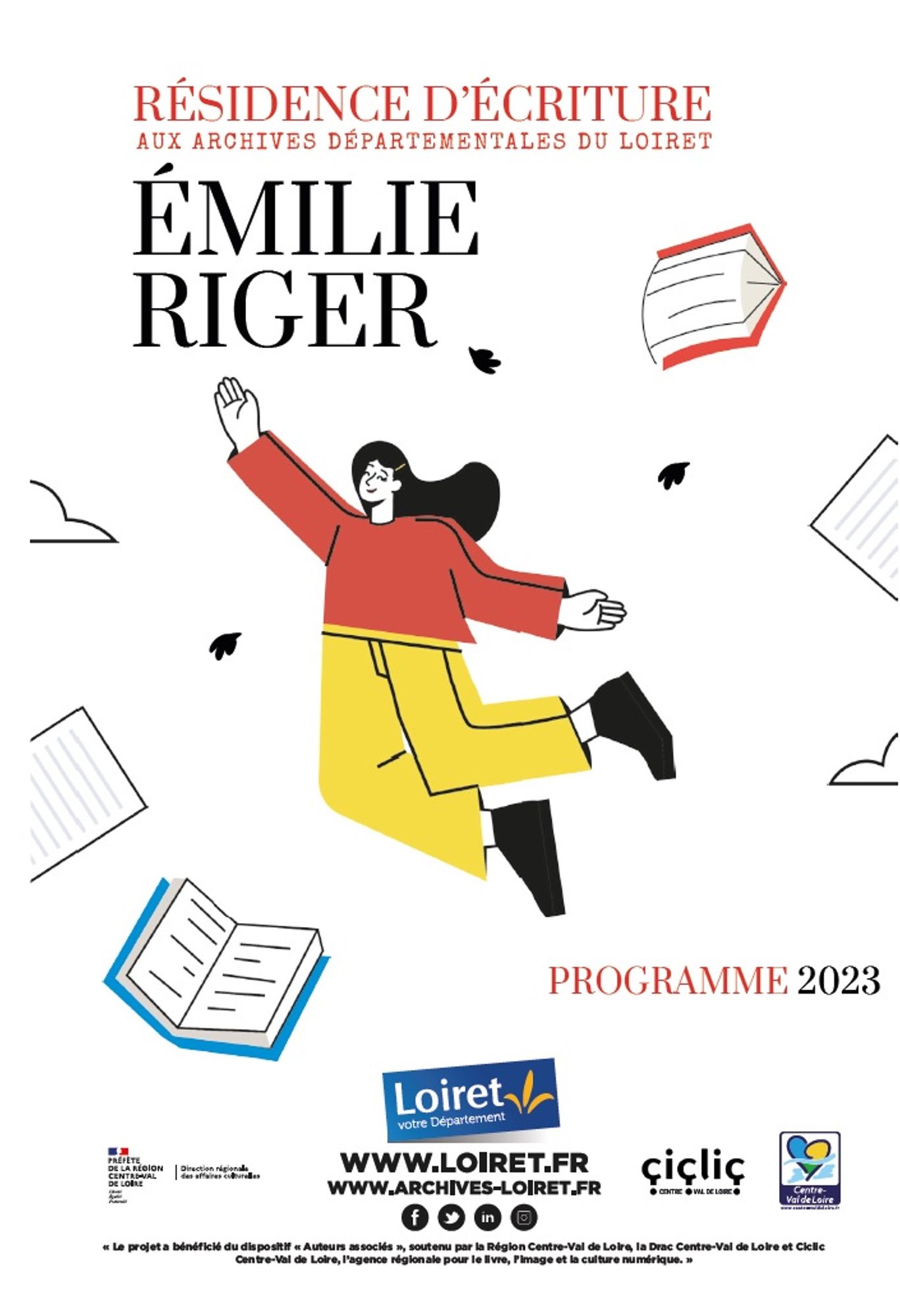 Les Archives du Loiret et l’écrivaine Emilie Riger s’associent en 2023 pour une résidence d’écriture. Pendant 7 mois, Emilie Riger bénéficiera d’une bourse de résidence pour mener à bien son projet d’écriture et organiser des animations autour de son œuvre. Le projet culturel, élaboré conjointement par les Archives du Loiret et l’écrivaine, a l’ambition de valoriser le patrimoine à travers une création contemporaine.