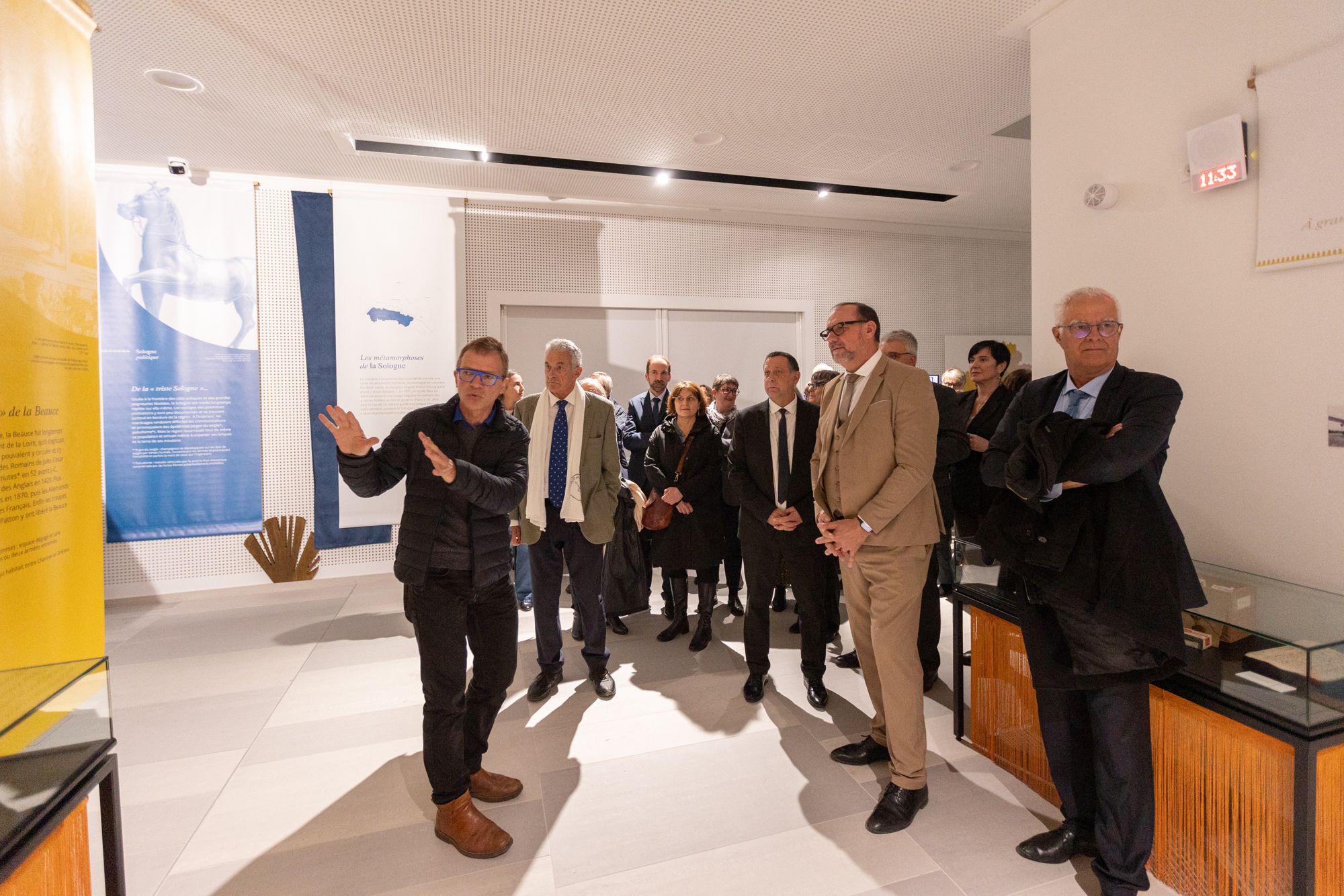 L’inauguration a également marqué l’ouverture d’une exposition retraçant l’histoire du Loiret sur le temps long et à travers ses six grandes régions naturelles , montrant comment leurs singularités et complémentarités en faisaient un département riche où il faisait bon vivre, le tout grâce à des documents soit monumentaux et iconiques du service, soit au contraire des pépites méconnues du public. Christophe Speroni, professeur à l’université d’Orléans, en était le commissaire scientifique. Les Archives ont également travaillé en partenariat avec le Service départemental d’archéologie préventive qui a prêté des objets archéologiques et complété le discours scientifique.