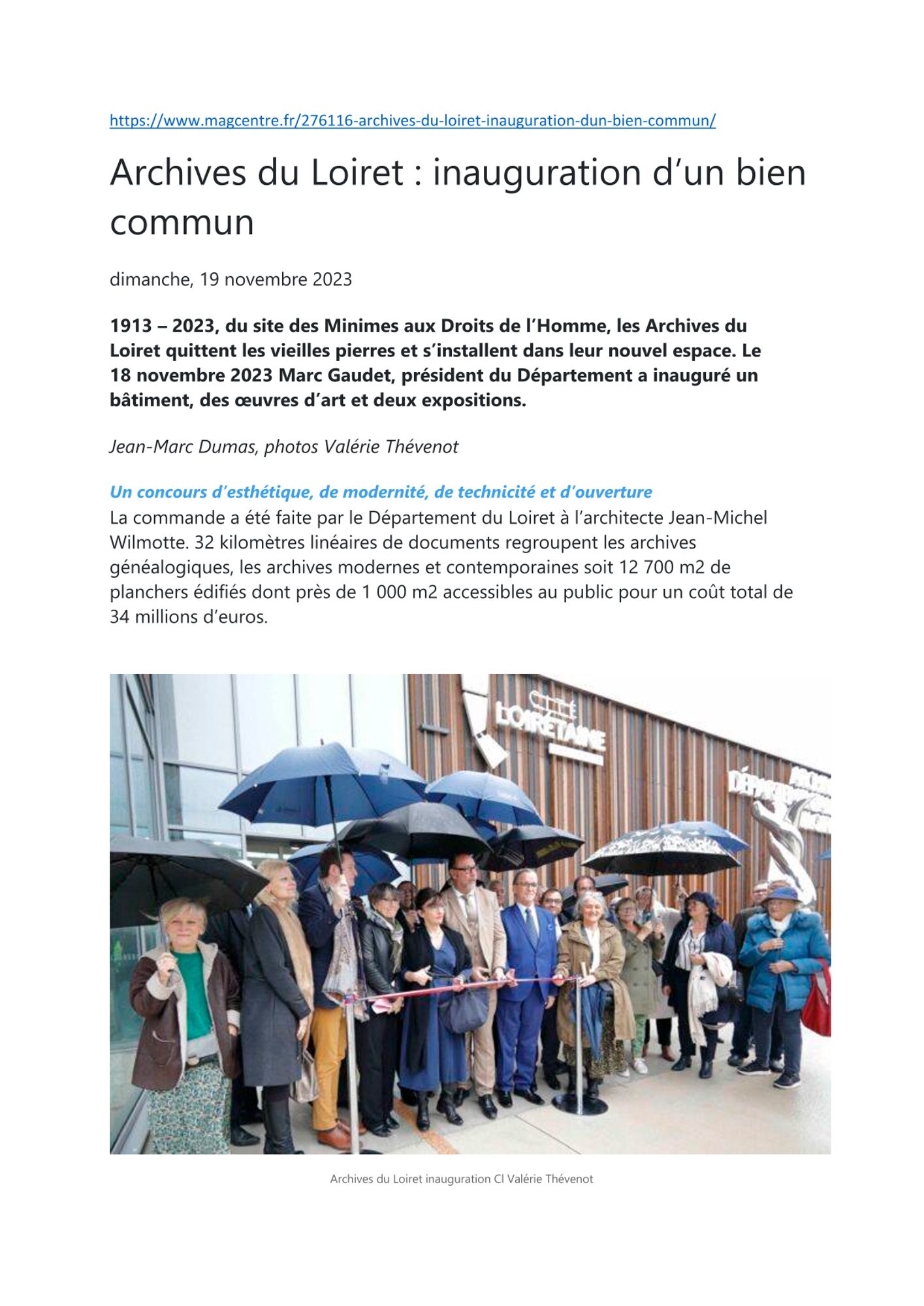 Voir la partie de l'article qui leur est consacrée dans Mag'Centre "Archives du Loiret - Inauguration d'un bien commun" :