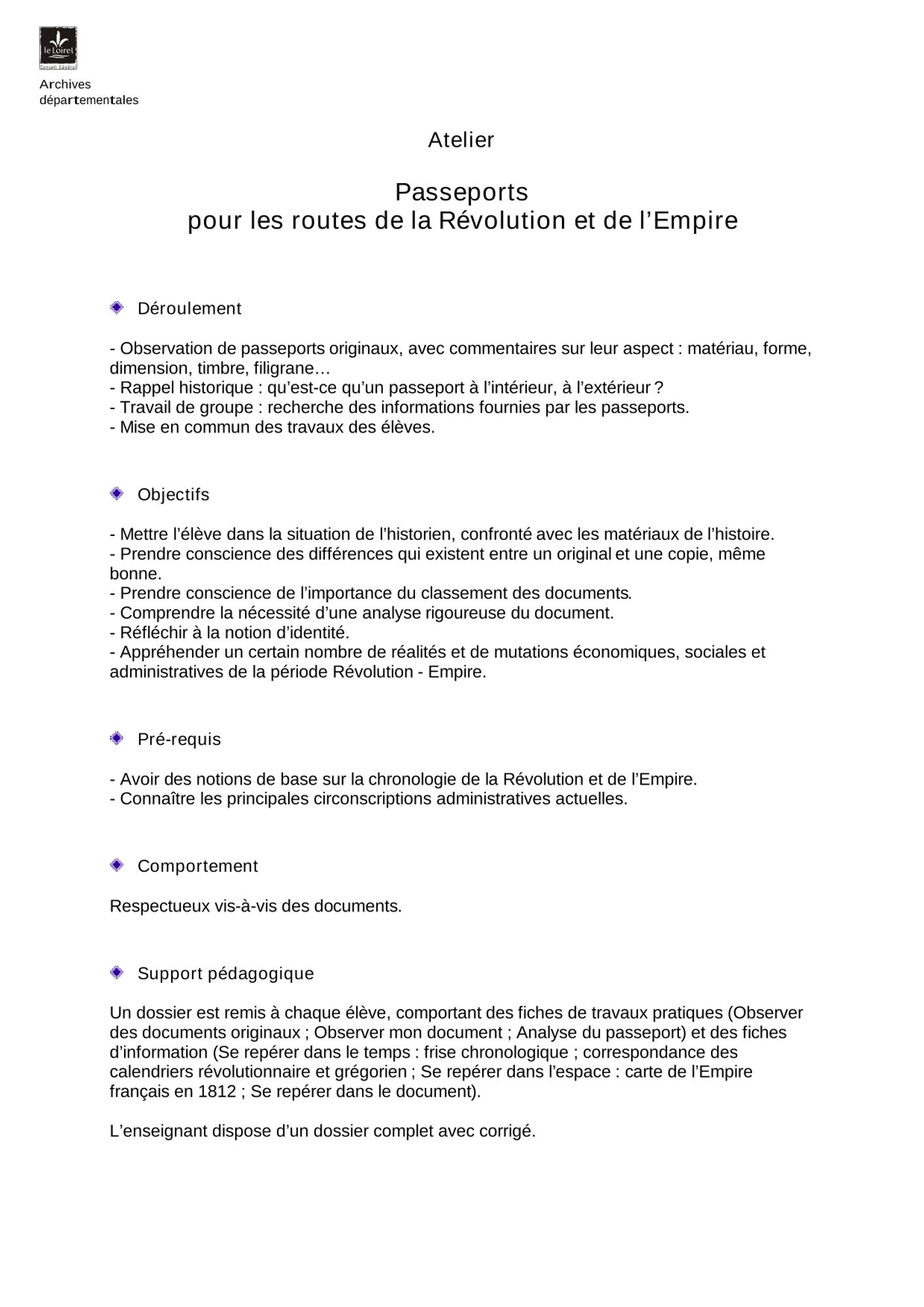 Les élèves choisissent un passeport et repèrent sa date sur la frise chronologique. Il apparaît alors que le passeport suit un modèle unique à partir de l'époque napoléonienne. La structure du document est expliquée.