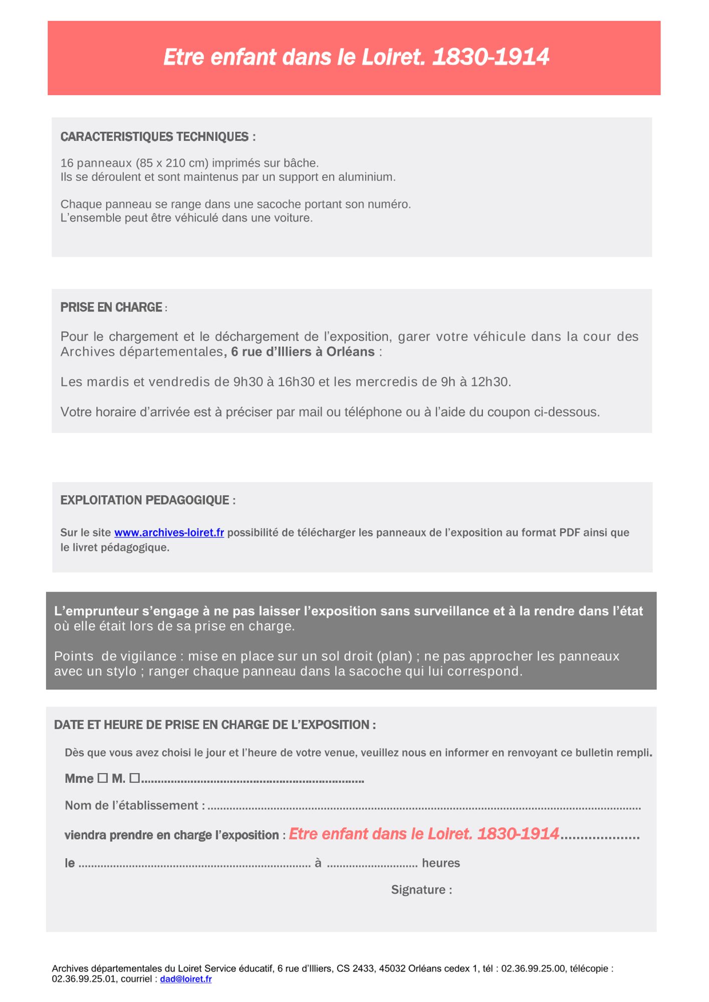 - Formulaire de réservation à remplir en ligne