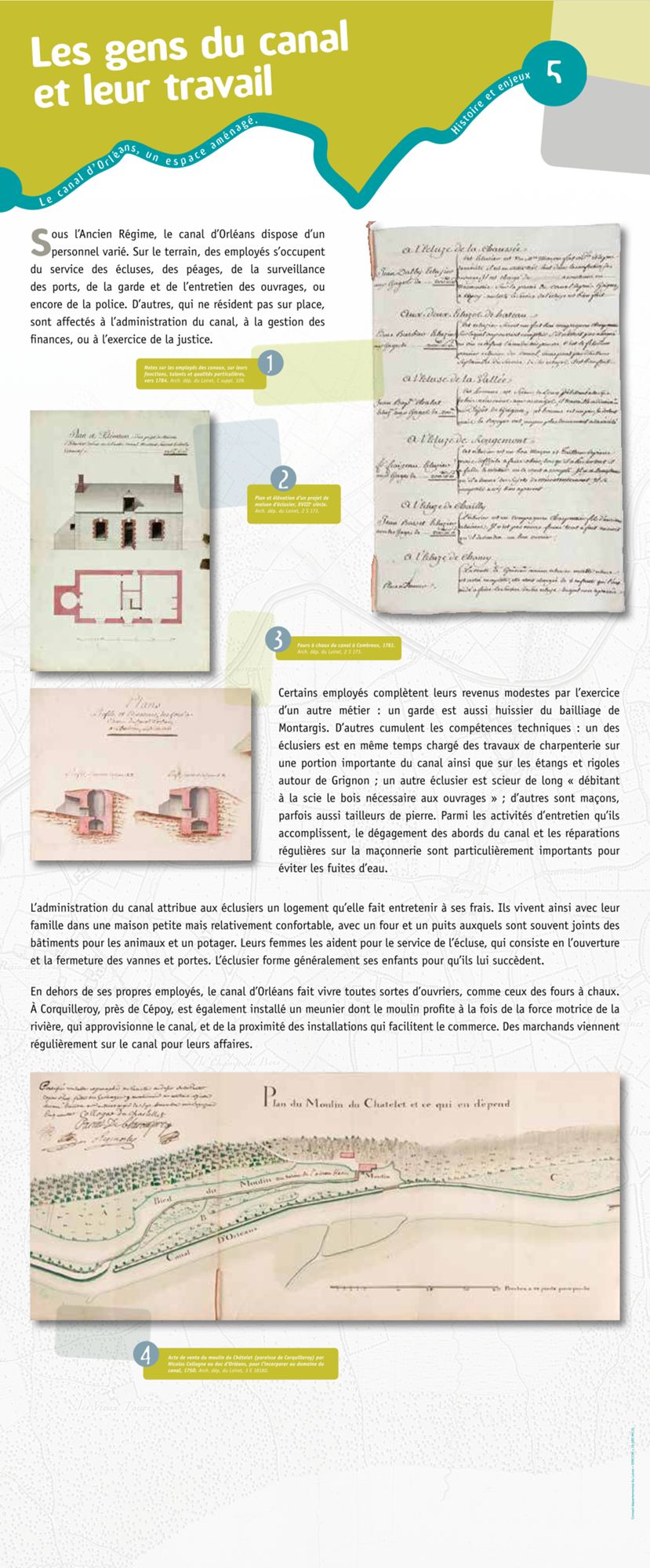 - Plan du canal du XVIIIe siècle, cartes et photographies, depuis Combleux jusqu'à la jonction avec le Loing (panneaux 10 à 18)