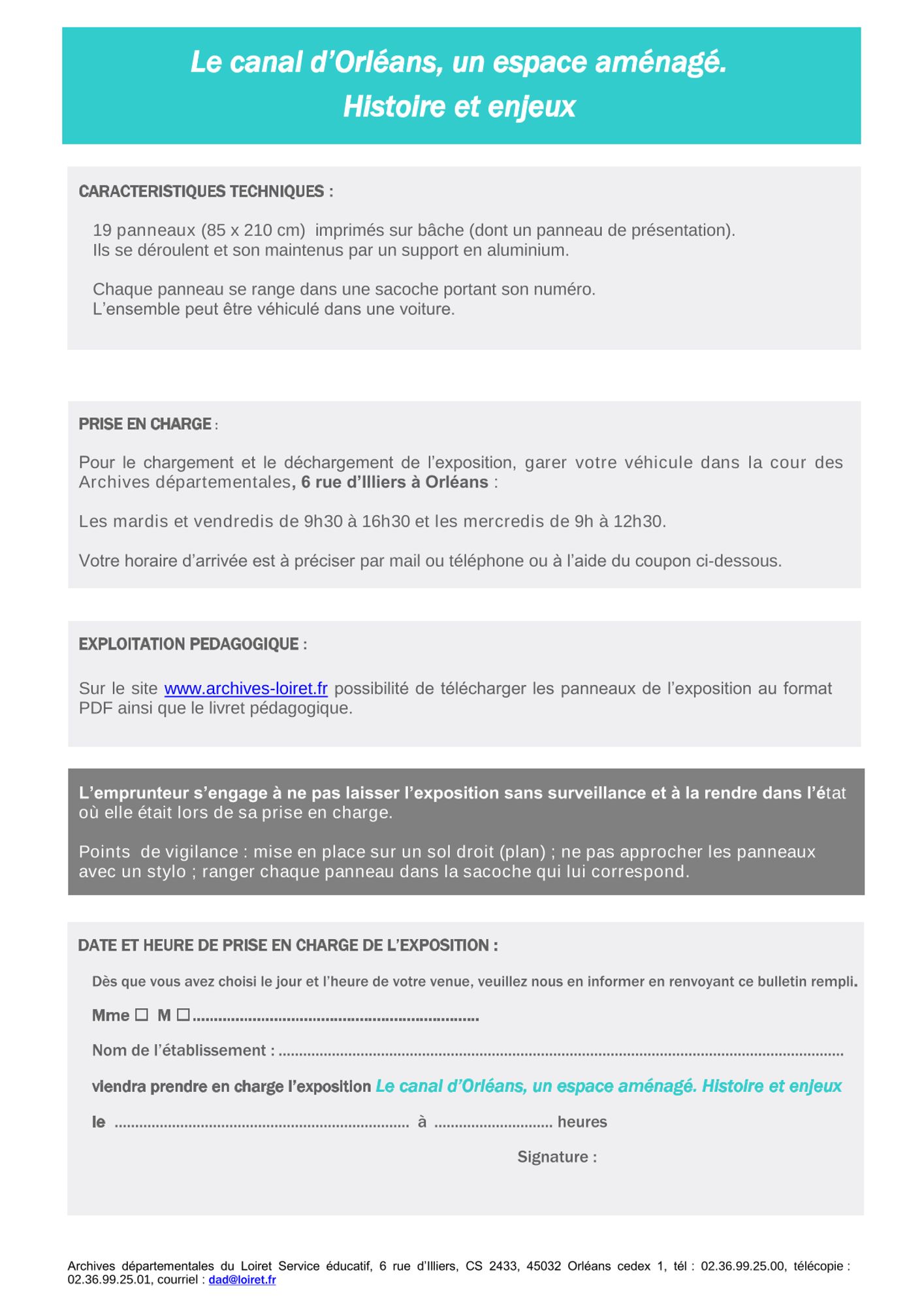 Le prêt est gratuit, la prise en charge et le retour des panneaux sont effectués par l'emprunteur.