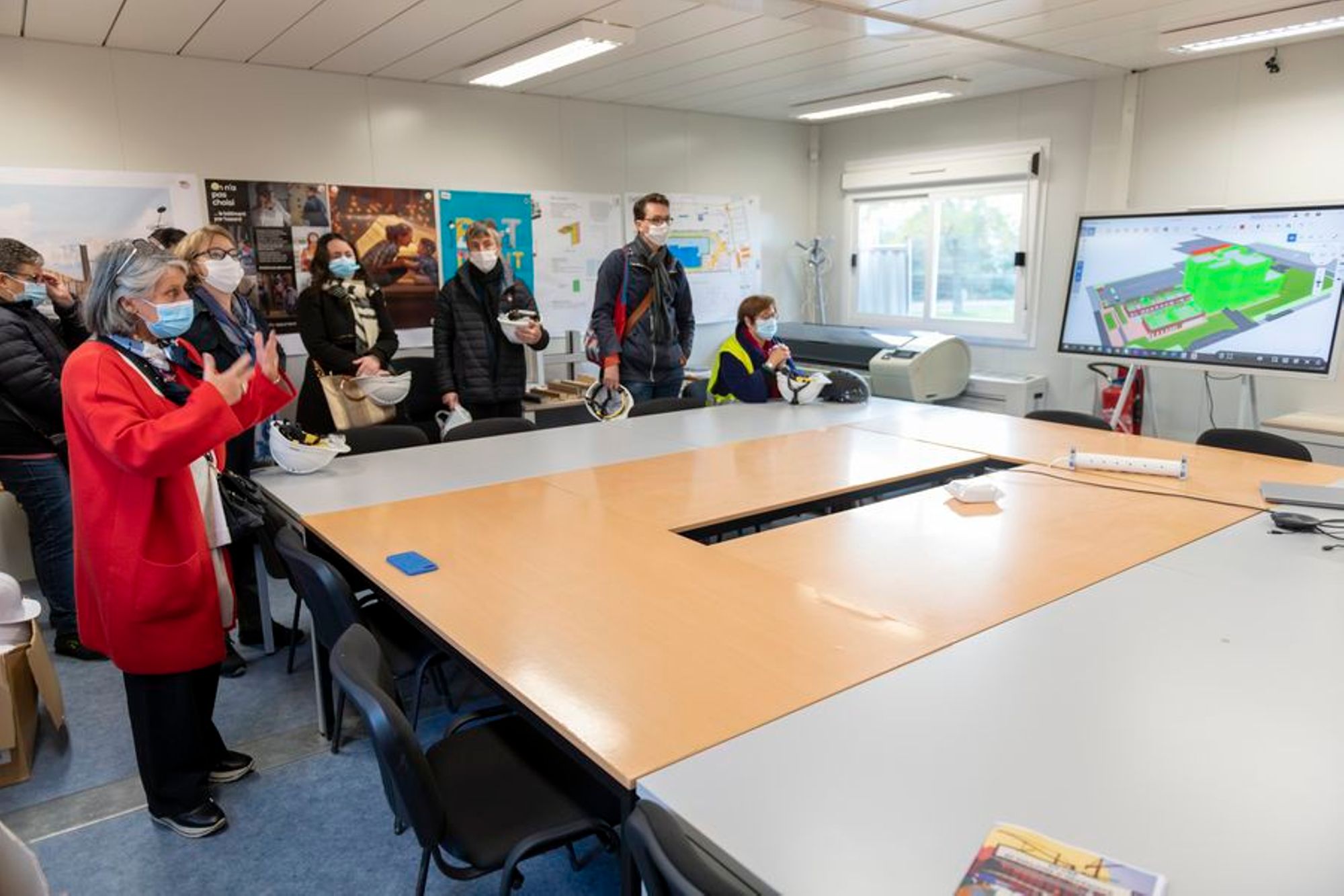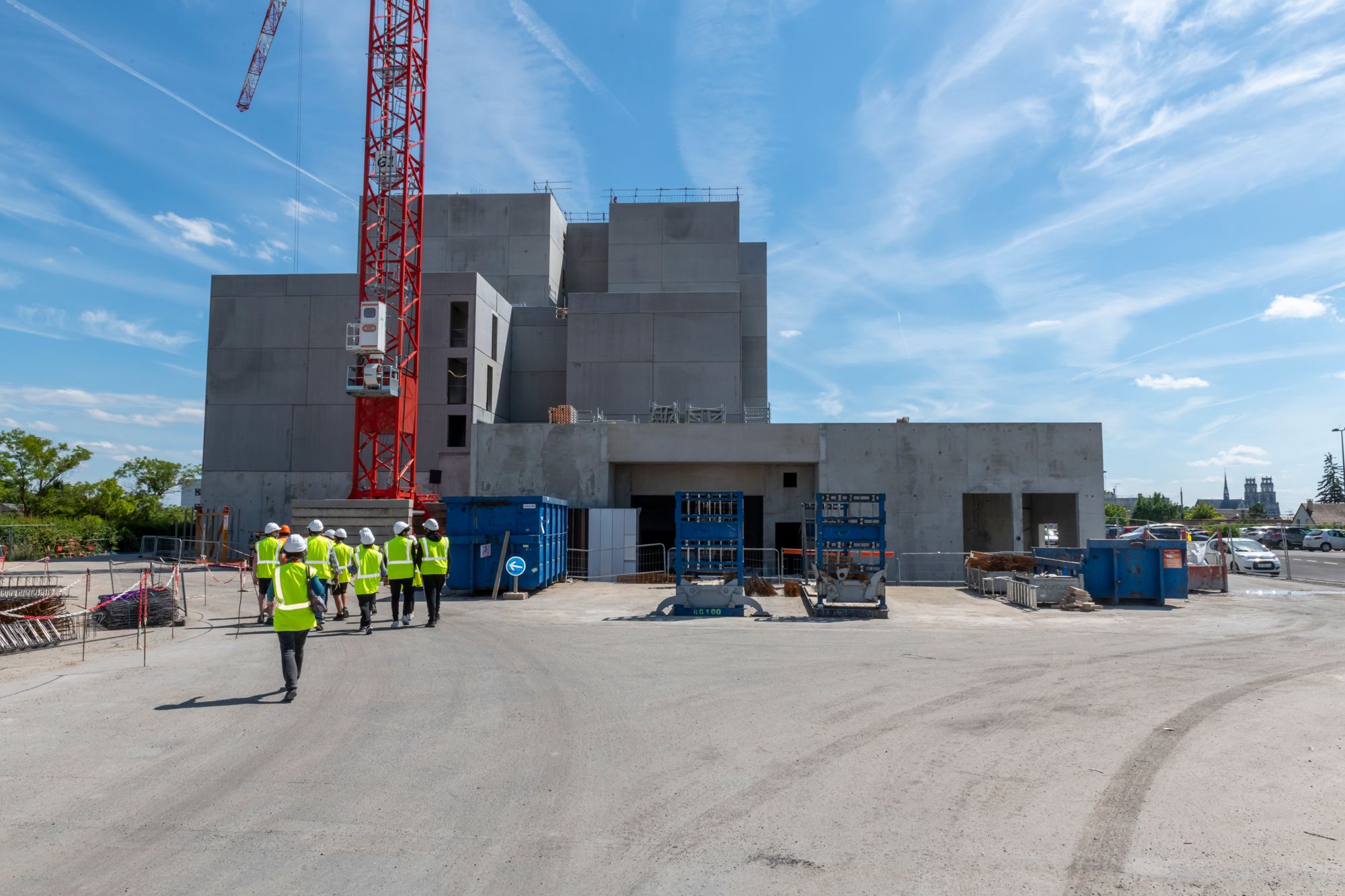 Deuxième visite du chantier pour l’ensemble de l’équipe, conduite par Laurence Bellais Vice-Présidente du Conseil départemental du Loiret, présidente de la "Commission Culture, Attractivité et Tourisme". Le gros oeuvre est désormais terminé et la grue va être démontée très prochainement. L'isolation et les revêtements extérieurs sont en cours de pose.