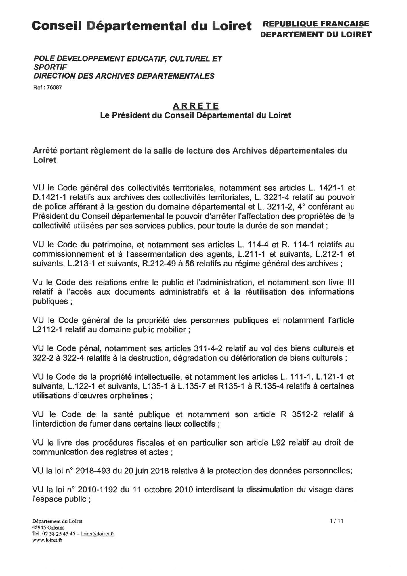 Les lecteurs peuvent demander en consultation jusqu'à dix documents par demi-journée ; ces derniers sont délivrés toutes les 45 minutes (sauf entre 12 heures et 13 heures) ; ils ne sont pas empruntables à l'extérieur des Archives départementales.