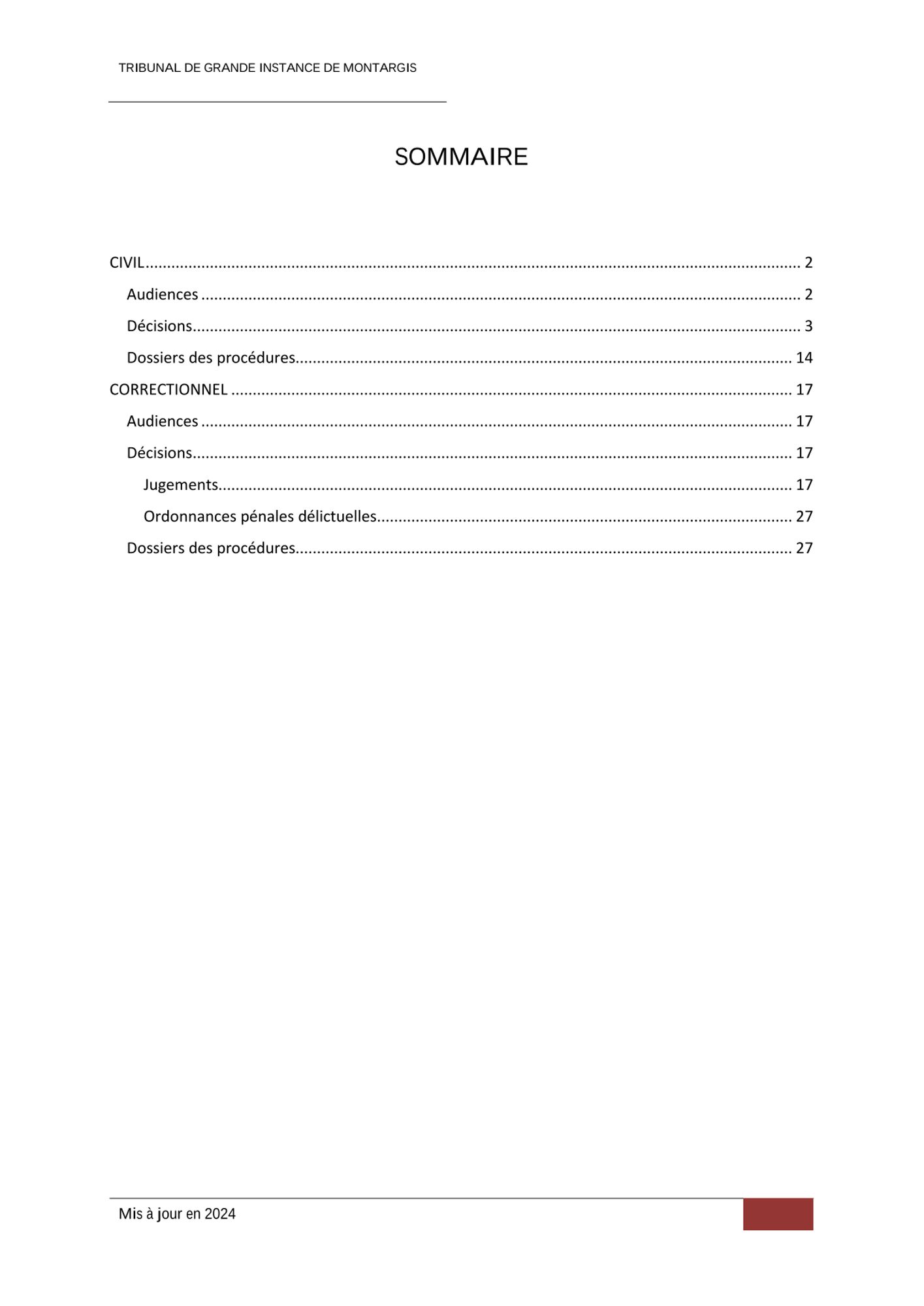 Seuls les rôles des audiences, les jugements et les dossiers des procédures sont ici présentés.