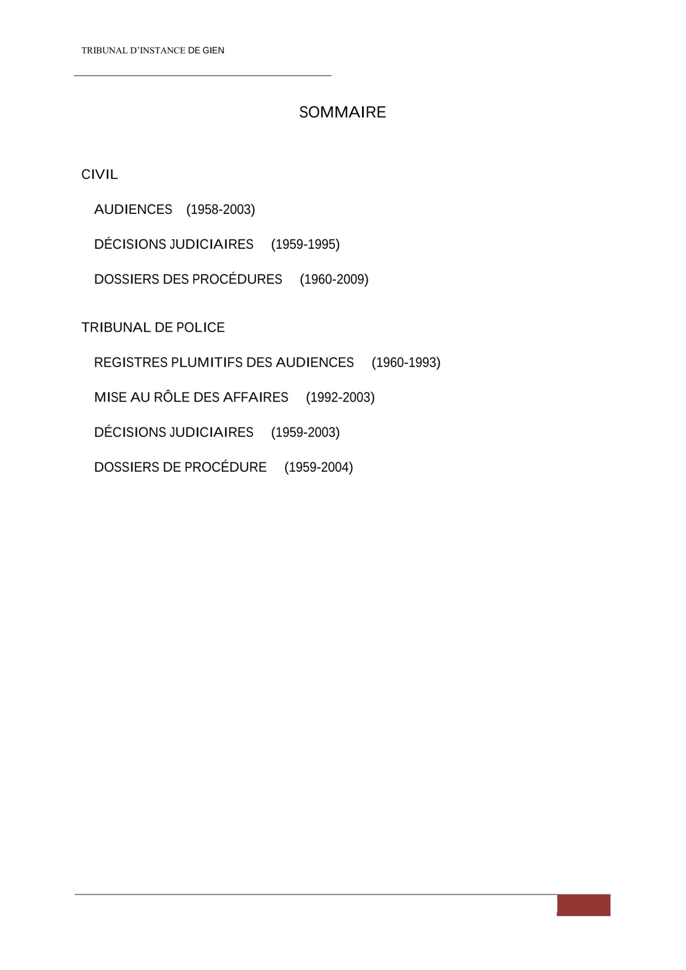 Instituées par la réforme judiciaire de 1958, le tribunal d’instance remplace comme juridiction de proximité les anciennes justices de paix. Le département du Loiret compte quatre tribunaux d’instance : Gien, Montargis, Orléans et Pithiviers.