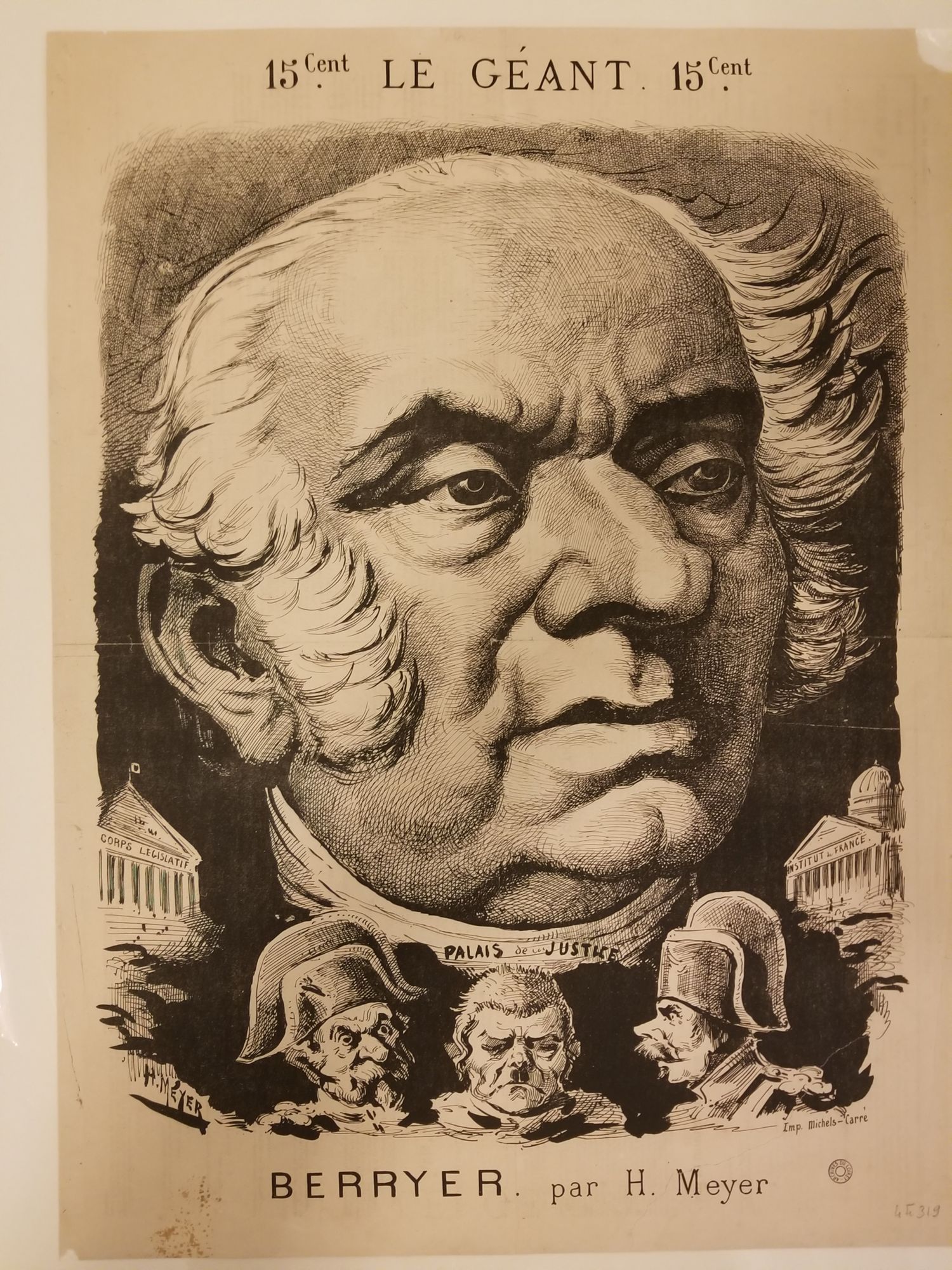 Pierre-Antoine Berryer naît à Paris le 4 janvier 1790, en pleine Révolution. Comme son père, il se dirige rapidement vers le métier d’avocat. Il entre en effet au barreau à l’âge de vingt ans. En 1815, il assiste son père pour défendre le maréchal Ney coupable aux yeux des royalistes et de Louis XVIII de trahison après son ralliement à l’empereur Napoléon débarqué récemment de l’île d’Elbe. L’issue est fatale pour l’accusé. Mais pour Pierre-Antoine Berryer, c’est le début d’une carrière à succès. Parallèlement à ses nombreuses plaidoiries, il intègre progressivement le monde politique. Il est élu député de Haute-Loire en janvier 1830, juste avant la deuxième révolution qui instaura pour 18 ans la Monarchie de Juillet. Par un vraisemblable manque d’audace, il refuse des portefeuilles ministériels : garde des sceaux et Instruction publique. Royaliste et libéral, il est tout de même réélu sous la Seconde République puis sous le Second Empire, mais cette fois-ci comme député des Bouches-du-Rhône. Fidèle à ses valeurs, il traverse la forte instabilité institutionnelle de l’époque avec éloquence. Il est d’ailleurs connu pour être un orateur exceptionnel, ce qu’il dément lui-même : « Savez-vous le secret des improvisateurs ? C’est qu’ils n’improvisent pas du tout. ». Sous-entendu, son talent oratoire n’est que le fruit d’un travail sans relâche ! C’est ce travail-ci qui fait de lui un membre de l’Académie française en 1852. Une conférence, la conférence « Berryer », sorte de joute oratoire entre jeunes avocats, porte même son nom !